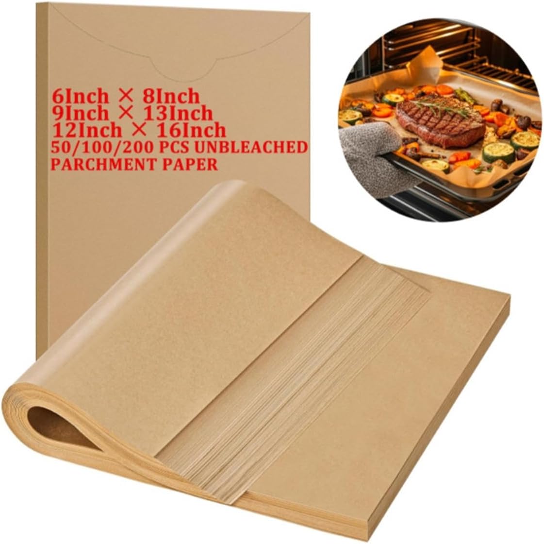 Elevate your cooking experience with our heavy-duty unbleached parchment paper sheets, designed to combine convenience, durability, and food safety for all your baking and grilling needs.Crafted from thickened unbleached parchment paper with a food-grade silicone coating, this liner withstands temperatures up to 250℃, making it perfect for high-heat baking, grilling, and air frying. Its waterproof and oil-proof properties effectively absorb excess grease from fried foods, grilled skewers, and roasted meats, while the double-sided non-stick surface ensures easy food release without leaving residue on your cookware.The disposable design means no more soaking or scrubbing baking trays—simply discard the used sheet after each use for instant cleanup. Available in versatile rectangular sizes (6×8, 9×13, 12×16 inches) and quantities (200 pieces), our parchment paper fits a wide range of cookware, from small air fryer baskets to large baking sheets and grill grates.Free of fluorescent agents and BPA, this food-safe liner is odorless and safe for direct contact with all types of food, from delicate pastries to savory grilled dishes. Whether you’re a home baker preparing weekend treats, a BBQ enthusiast grilling skewers, or a restaurateur streamlining kitchen cleanup, our parchment paper sheets are an essential tool to make cooking faster, cleaner, and healthier.