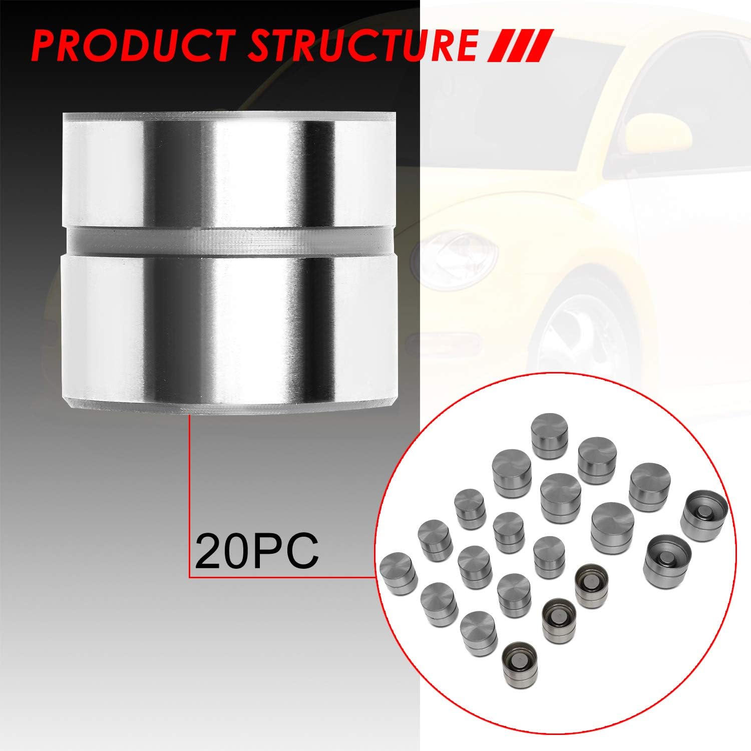 The most obvious symptom of a faulty hydraulic lifter is the noise it creates in your car's engine. You can usually distinguish the faulty lifter by the distinct sound. Instead of a knock or ping, a faulty hydraulic lifter will usually make a sound more reminiscent of a tapping sound. The tapping will be quick in rhythm and may occur when the vehicle is cold or hot, depending on what the problem with the hydraulic lifter is. The lifter may be having problems with a sticking check valve, dirt, wear or other problems. It may be time to replace them if a oil change or flush doesnt resolve the issue.Package Included:20Pc Hydraulic Valve LiftersNotes:OEM Part Number: 058109309B