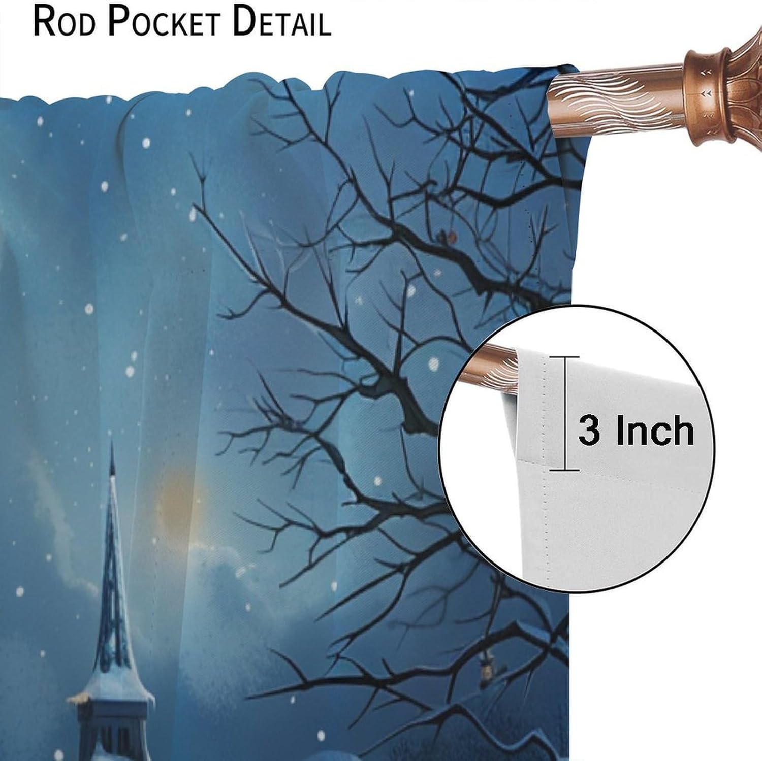 Christmas Tree Town Cabin Blackout Curtains for Bedroom Living Room, Winter Snow House Curtains Rod Pocket Thermal Insulated Window Drapes, 2 Panels/Each 21" W x 63" L