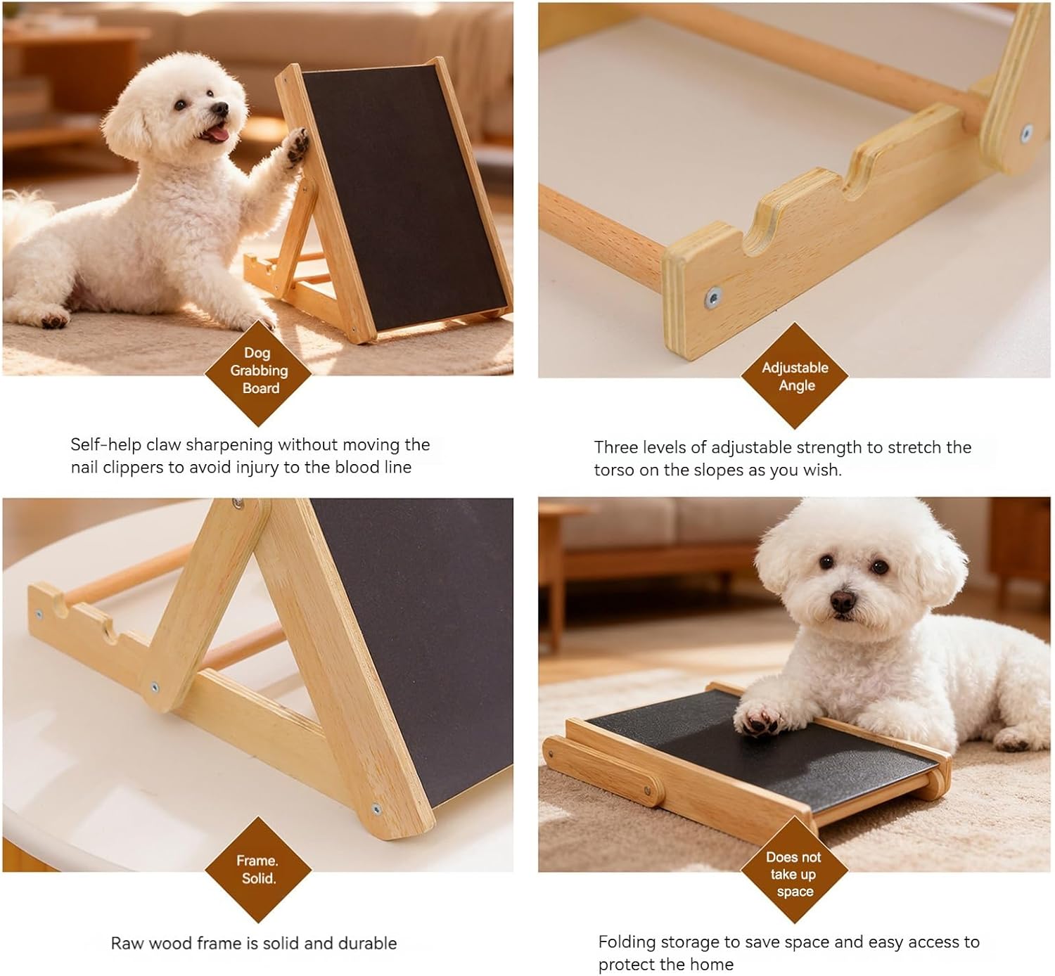 Pet Nail Scratcher Adjustable Height Indoor Outdoor Boredom Furniture Protector Training Travel Backyard Home Dog Scratch Board Scratching Boards The puppy claw care board is designed to promote pet nail and claw health while providing an attractive scratcher to relieve boredom. This versatile tool is ideal for both indoor and outdoor use, ensuring your pet stays active and entertained in the backyard or during travel. By redirecting scratching behavior, it helps protect furniture against damage and at the same time helps train your pet to develop healthier habits. Specification Product Name: Dog Scratching Board Product size: approximately 39 x 27.5 x 3 5 cm/15.35 x 10.83 x 13.78 inches. Product Weight: 1250g Material: wood. Product List: 1 x dog scratching board. Note: Due to different lighting and screen settings, the colour of the item may be slightly different from the picture. Due to different manual measurements, please allow 1-2cm size difference.