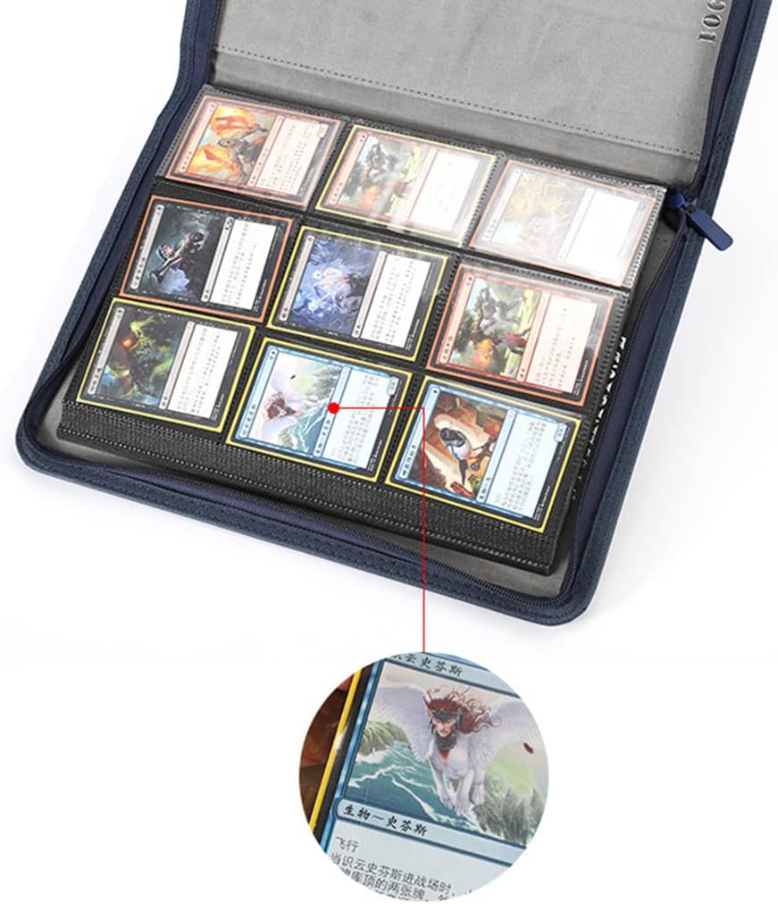 Double-Sided 9 Pockets Trading Card Binder, Card Collectors Album Folder Side Loading Pockets For CardsFeatures:and This card binder features water-resistant premium PU, a heavy-duty zipper, and PVC card sheets that keep your cards safe.Card holder binder can hold up to 360 cards, providing plenty of space to get all your cards organized.Side loading to cards from easily falling out. Just the right size for kids or adaults to carry around with a wrist strap through the pages, see through every detail and artwork, no need to take Cards out of the transparent pocket sheets.for cards, for photos, Card Game, for Football Cards, Baseball Cards, Card Games, Specifications PUColor: Black/Blue/Green/Red/YellowPackage Weight: approx.790gCard Album Size: approx.27.5x35cm/10.82x13.78inCard Slot Size: approx.7x9.7cm/2.75x3.81inPackage Includes:1Pc x Card AlbumNote:Please allow 1-2cm error due to manual measurement. pls make sure you do not mind before you bid.Due to the difference between different monitors, the picture may not reflect the actual color of the item. Thank you!