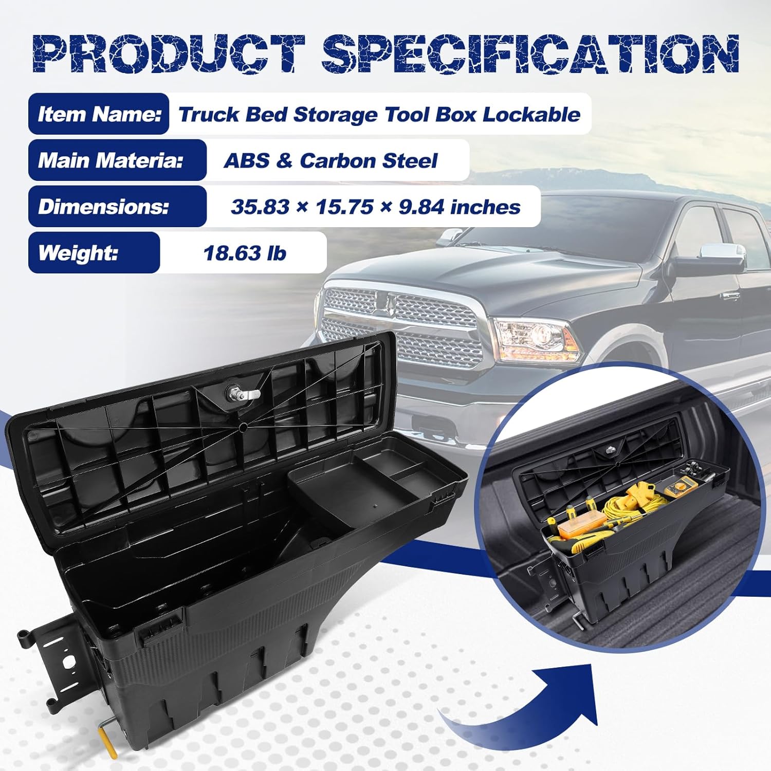 | Included Components | Truck Bed Storage Tool Box Lockable |
