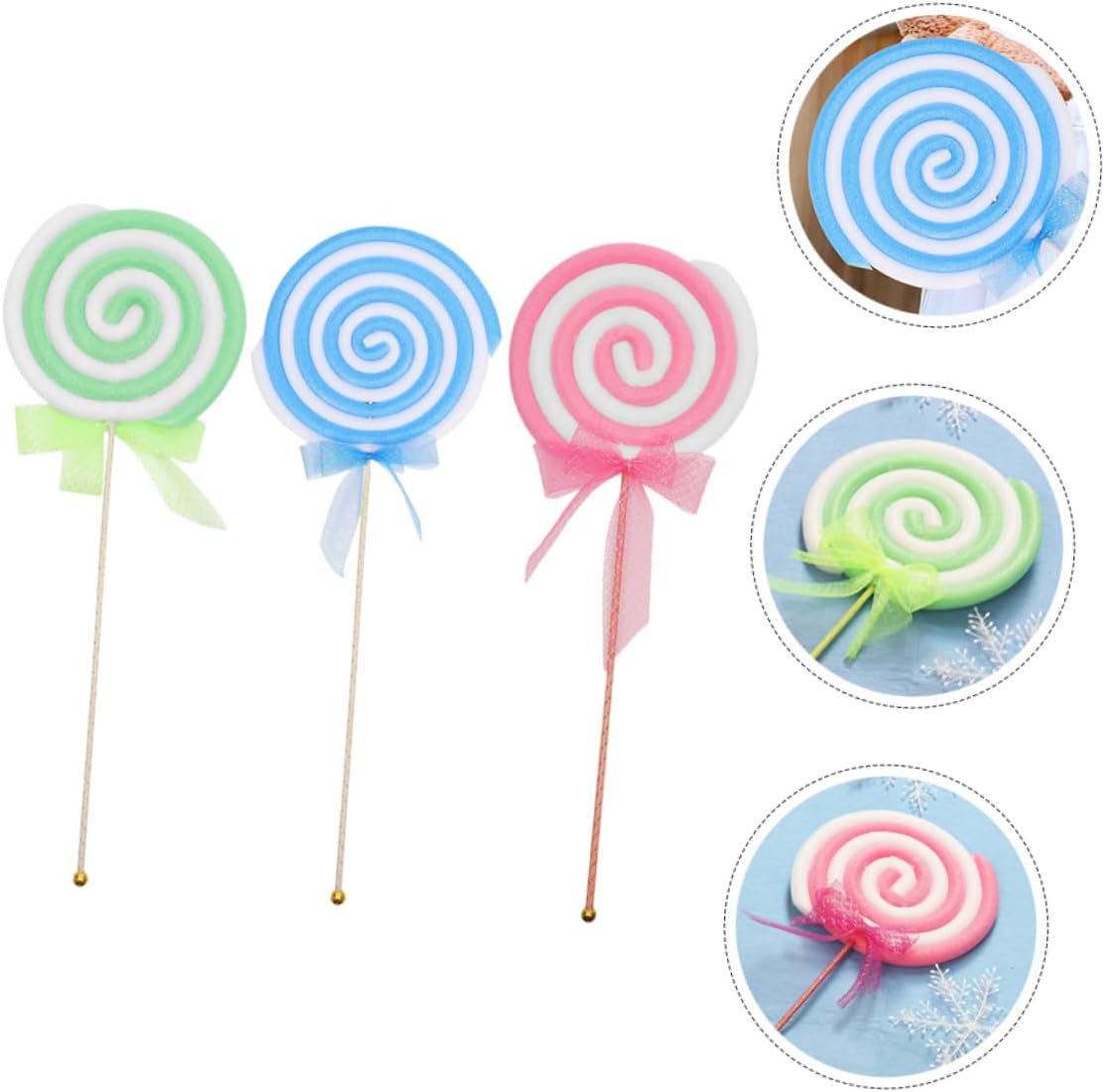Package Include 3 x simulated lollipop models Features -Color:Assorted Color Lollipop Photo Props -Size:60.00X22.00X2.00cm/23.58X8.65X0.79in Photo Props -Material:Foam, plastic fake candy photo props - The lollipop shape of this simulation lollipop is exquisite and beautiful, adding an attractive element to any setting unique lollipop ornaments. - Realistic and chic simulation lollipop design, making photo or showcase more charming and lovely, very decorative. fake lollipop - Fine craftsmanship and materials, bright color and adorable lollipop design is more eye-catching, can widely used. lollipop fake lollipop decorations - This simulation lollipop prop is versatile and can be used in various places, making it suitable for different purposes decorative lollipop model. - The simulation lollipop model is made of material for use, which will not deform or fade easily in daily. fake lollipop propsGoods Descriptionfake candy photo props This simulation lollipop model is a must-have for any store or event.wedding photo props Multipurpose, lollipop prop can be used as household decoration, photography props, , etc.decorative fake lollipop Stable foam and plastic materials used in its construction are very stable, you can use this simulation lollipop model with confidence