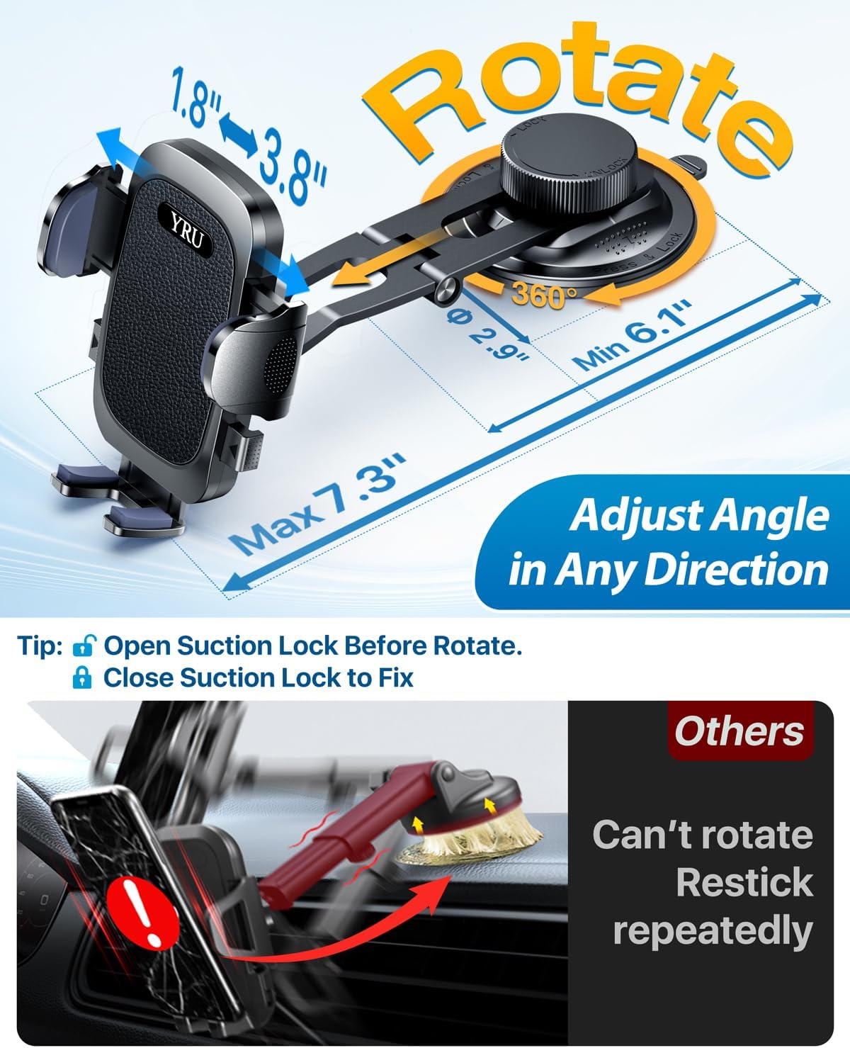 | Additional Features | 【Built-in Steel-cored Air Vent Hook, Rock-solid & Durable】;【Environmentally Friendly Material】, 【Full Soft Silicone Protection】;【KING PC Materials Challenge -40~194℉】, 【Strong Sticky Suction Cup - 1.5X others】,【The Cable Clip=No Messy Cords+Handy+Good Mood+Safe Drive】, 【World-class Safety Certs-Military-Grade】;【Original Widened & Thickened Bottom Tray】, 𝟓 𝐘𝐄𝐀𝐑𝐒(𝟔𝟎 𝐌𝐨𝐧𝐭𝐡𝐬) 𝗥𝗲𝗳𝘂𝗻𝗱 𝗼𝗿 𝗥𝗲𝗽𝗹𝗮𝗰𝗲𝗺𝗲𝗻𝘁 𝐒𝐮𝐩𝐩𝐨𝐫𝐭, 【Compact & Sleek Arm-Military-Grade Anti-Shake】 |