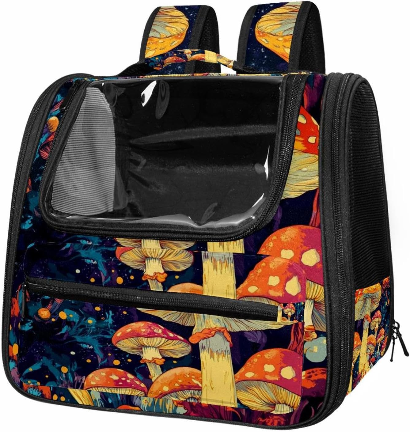 Well made: Cat Backpack Carrier is made from 900D oxford fabric, pp webbing, velvet, nylon, which is very sturdy, environmentally friendly and breathable. Not easily scratched by pet’s claws, pet backpack carrier is SAFETY & ANTI-SCRATCH. The back padding will give you a comfortable and breathable experience. Ventilated Backpack: With a breathable window in the front, this pet backpack allows cats to enjoy the sun without feeling stuffy. There are two side pockets and one big front pocket, and you can take foods or toy for your kitten pet. It is big enough for cat to turn around, and there are side pockets and hook holes, you will enjoy the greatest convenience when taking your cat out. Perfect size: Cat carrier is 15.75x9.84x13.78in/40x25x35cm. Fits most small/medium sized cat, dog, and pet. Quality fleece bed provide a comfortable place for your pet. Lightweight and easy to carry to all places. Built-in harnesses keep your naughty friends from escaping. Removable cosy mat for easier cleaning and let your pet enjoy it inside. Easy to carry: The adjustable shoulder strap of pet carrier bag help you hands-free carrying and makes it the most safe and convenient pet carrier bag for your travel. Seat belt design provide pets with safety protection throughout the trip. Pad protection keep your pets comfortable during travel. Unique Design: Innovative inside graphic design gives you a stereoscopic 3D visual experience. You also send us the photos you interest to make your unique dog or cat carrier. Pet bag is also a amazing gift for pet lover.