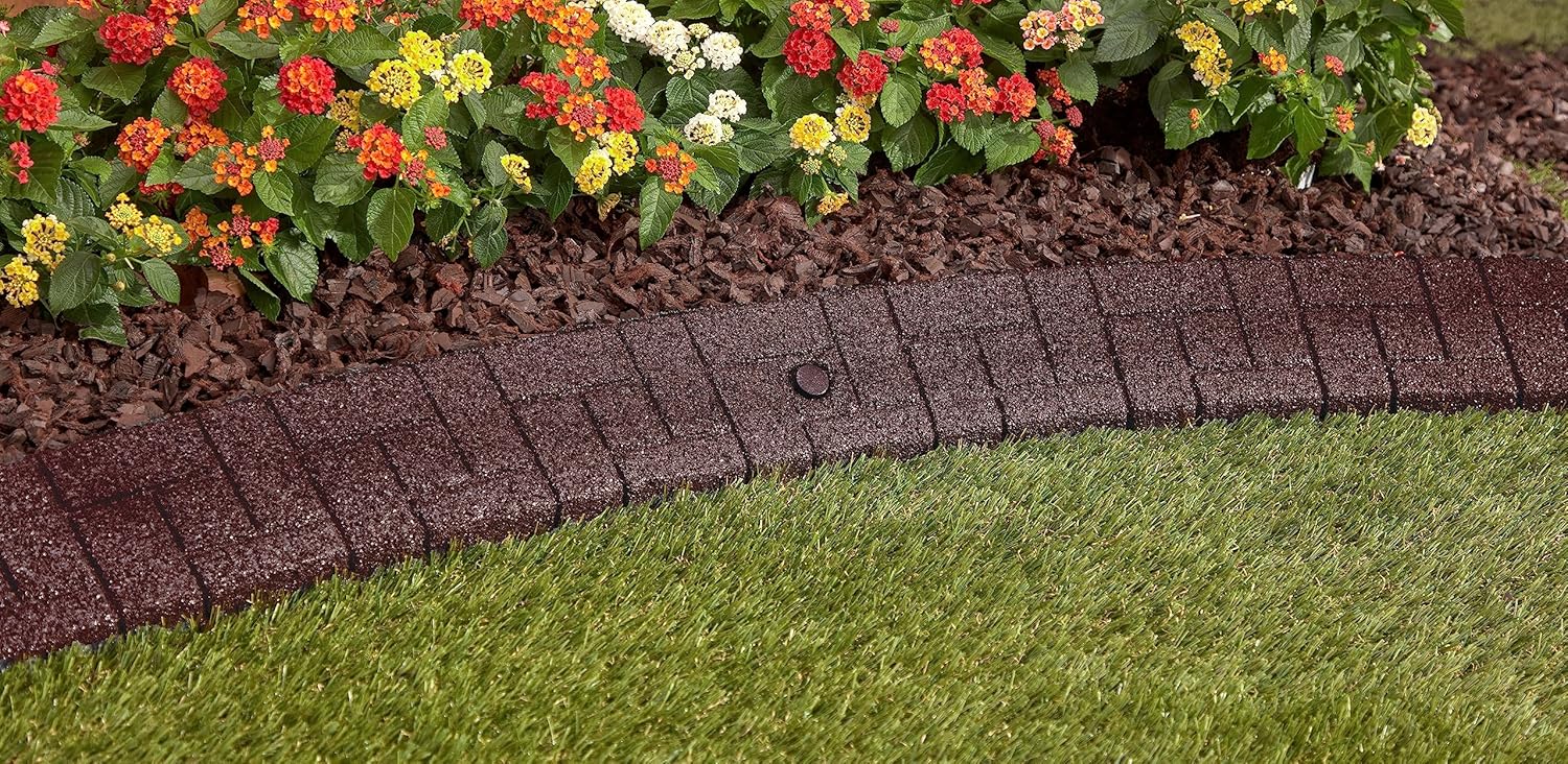 Rubberific Angled Terrracotta Brick curb edging is the perfect edging for flower beds, gardens, sidewalks, driveways, and more. The flexible rubber edging will contour to any landscape and provide any project with an elegent finished look. The color adds a classic and sophisticated look to any landscape. This edging curves and contours to your space to fit any look you want.