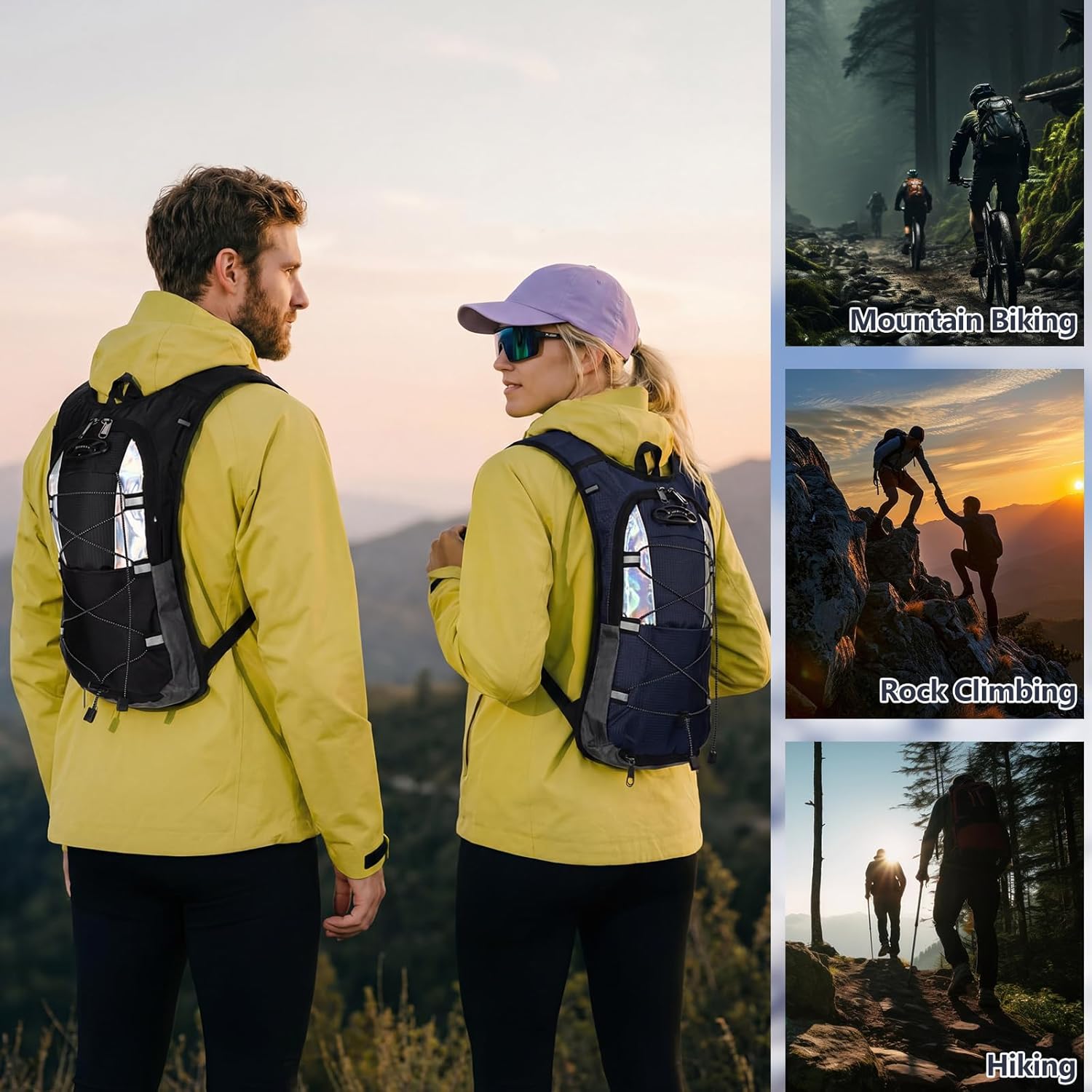 Features: Multi-scene Use Hydration Vest: whether you're powering through a marathon, trail running, or just enjoying a leisurely jog, running vest will make your outdoor experience even more memorable with its unmatched comfort, breathability, and excellent storage! Also suitable for road cycling, hiking, mountaineering, racing, and any outdoor challenge! This hydration backpack is definitely the ideal gift for family and friends who love the outdoors. Material: mesh fabric Color: dark blue, black Size: 380g, 43×23×5 cm Package includes: 4 × running hydration backpacks 4 × water bladders Notes: Manual measurement, please allow slight errors on size. The color may exist a slight difference due to different screen displays.