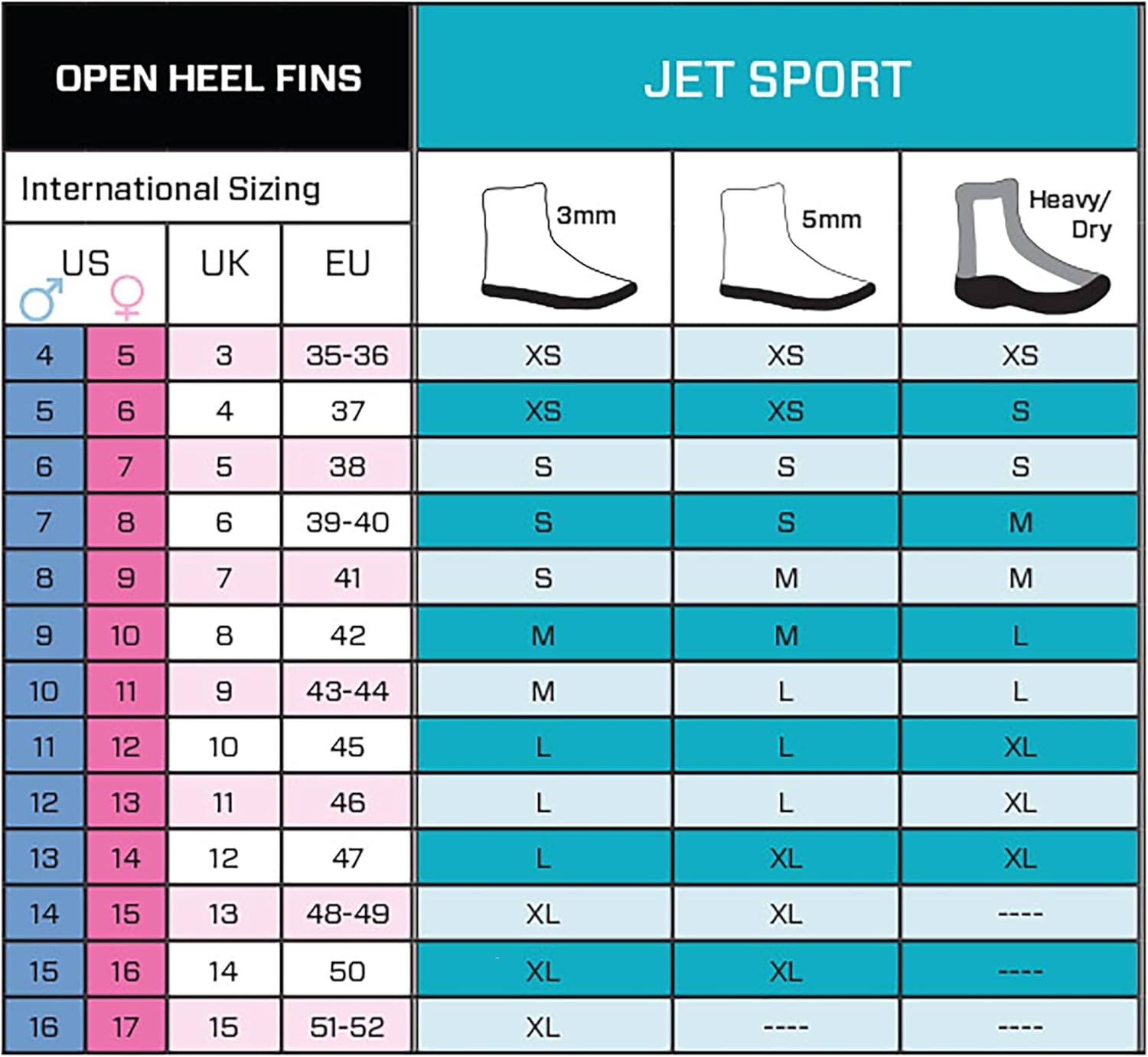 Fans of traditional blade fins will love the SCUBAPRO Jet Sport Adjustable Fin, which impresses with its power, acceleration, and maneuverability. Lightweight and comfortable, the Jet Sport Adjustable features a big, slightly stiff three-material blade that generates propulsive kicking power. The fin's drag-reducing vents substantially decrease resistance on up and down strokes, helping you save energy while providing good stability. Donning and doffing the fin is easy thanks to features like strap adjustments and quick-release buckles. Find your comfort zone with the ergonomic foot pocket, which molds to your foot for all-day ease. Driven to constantly innovate and improve the diving experience, SCUBAPRO builds high-quality equipment for the work, sport, and lifestyle of people whose passion is found below the surface. Includes non-skid pattern on soles; weighs 3.55 pounds (pair); one-year warranty.