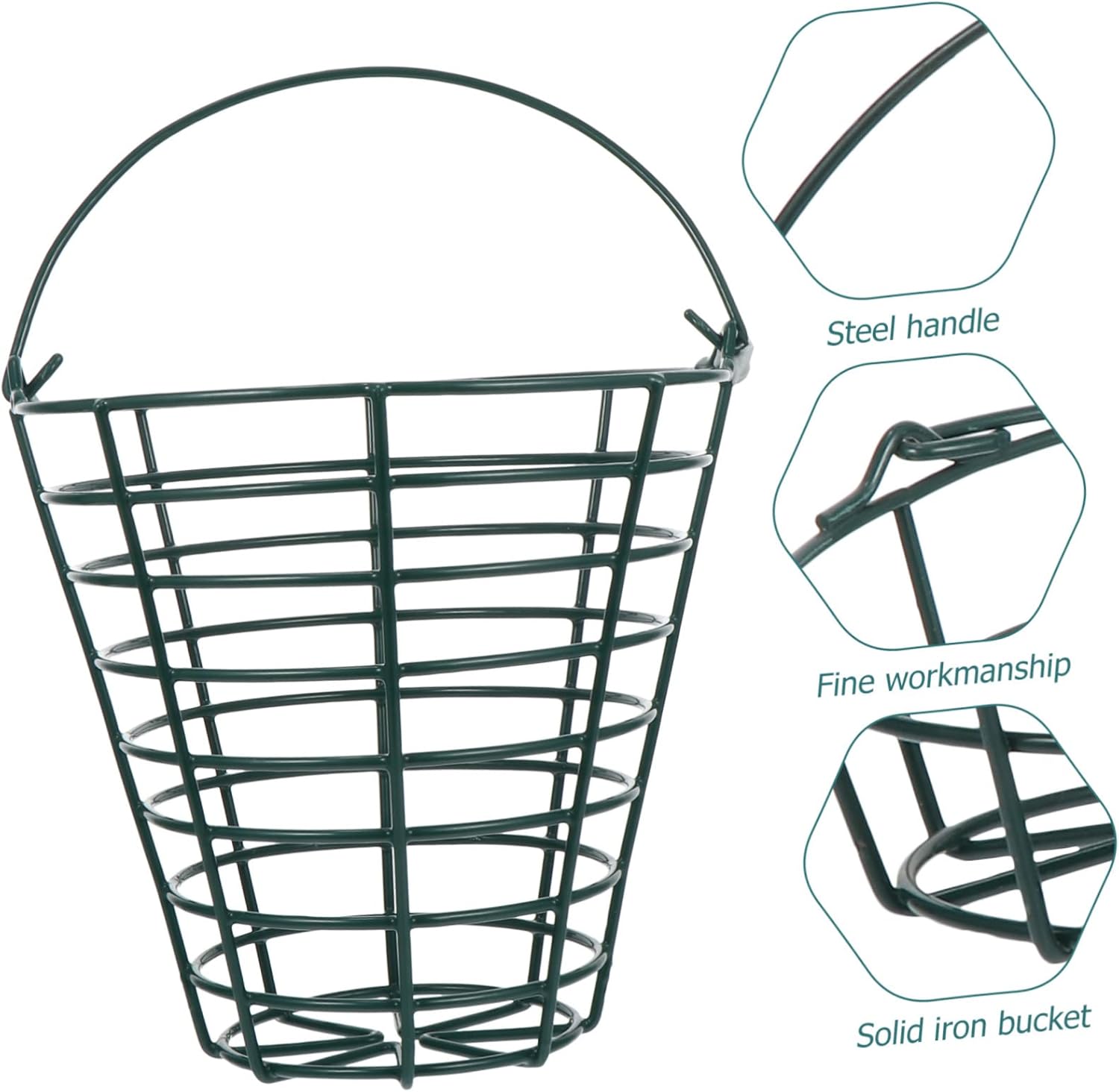 Package List 1 x golfing balls storage basket Characteristics - Material: Stainless steel Golfing Ball Container. - Color: Dark Green Balls Basket. - Capacity: About 100 golfs balls Storage Basket. - Size: 25.50X25.50X25.00cm/10.02X10.02X9.82in Stainless Steel Basket - Stainless steel material, study and to use for storing balls Metal Basket. - The steel handle will not break or break due to the weight of the Storage Container. - This basket can be loaded with balls for cleaning, easy and quick Golfs Range Baskets. - Large capacity, can meet your needs, convenient and Golfing Ball Storage Basket. - The basket space is large, can leak out the soil and other dirt, clean and healthy Carrying Baskets.Goods DescriptionMetal Basket It is a good golfing accessory for individuals and clubs alike.Golfs Range Baskets This is a golfs ball storage basket, which makes it easy and comfortable to store and transport balls.Golfing Ball Storage Basket Can stored 100 balls together in one time, without taking up much volume for storage