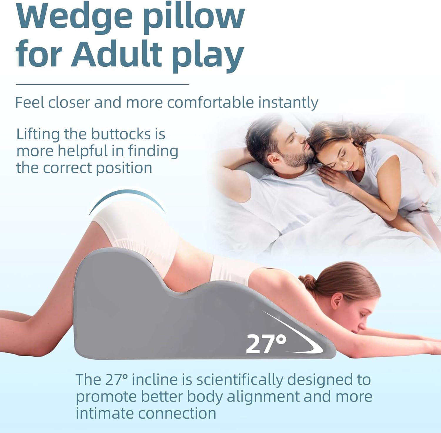 Product Description: 【Premium Support for Enhanced Comfort】 Experience the perfect blend of support and comfort with our ergonomically designed wedge pillow. Its unique 27-degree angle is crafted to provide optimal alignment and pressure relief, making it an ideal choice for couples seeking comfort and support. 【Durable & Adaptive Memory Foam Construction】 Crafted from high-density memory foam, this pillow molds to your body’s contours to deliver personalized support while maintaining its shape over time. The resilient foam ensures lasting firmness, offering a reliable foundation for various activities. 【Versatile Multi-Scenario Use】 Beyond its primary design, this adaptive pillow serves multiple purposes. Use it as a supportive backrest while reading, a comfortable leg elevation pillow, or a stable seat cushion. Its design promotes healthy posture and reduces the need for constant repositioning during relaxation or recovery. 【Easy Care & Portable Design】 Designed for convenience, the pillow features a removable and breathable cotton cover that is easy to wash, helping to maintain freshness. The lightweight build allows you to effortlessly move it between the bedroom, living room, or any other space where support is needed. 【Product Specifications】 Product Dimensions: 23.3 inches in length, 18.11 inches in width (Height information not specified on the product page).Fill Material: High-density memory foam.Cover Material: Breathable, removable cotton cover.Design: 27-degree wedge shape. For best results, allow the pillow to fully expand for 24-48 hours after unpacking. The cover is machine washable for easy maintenance. This pillow is designed for adult use.