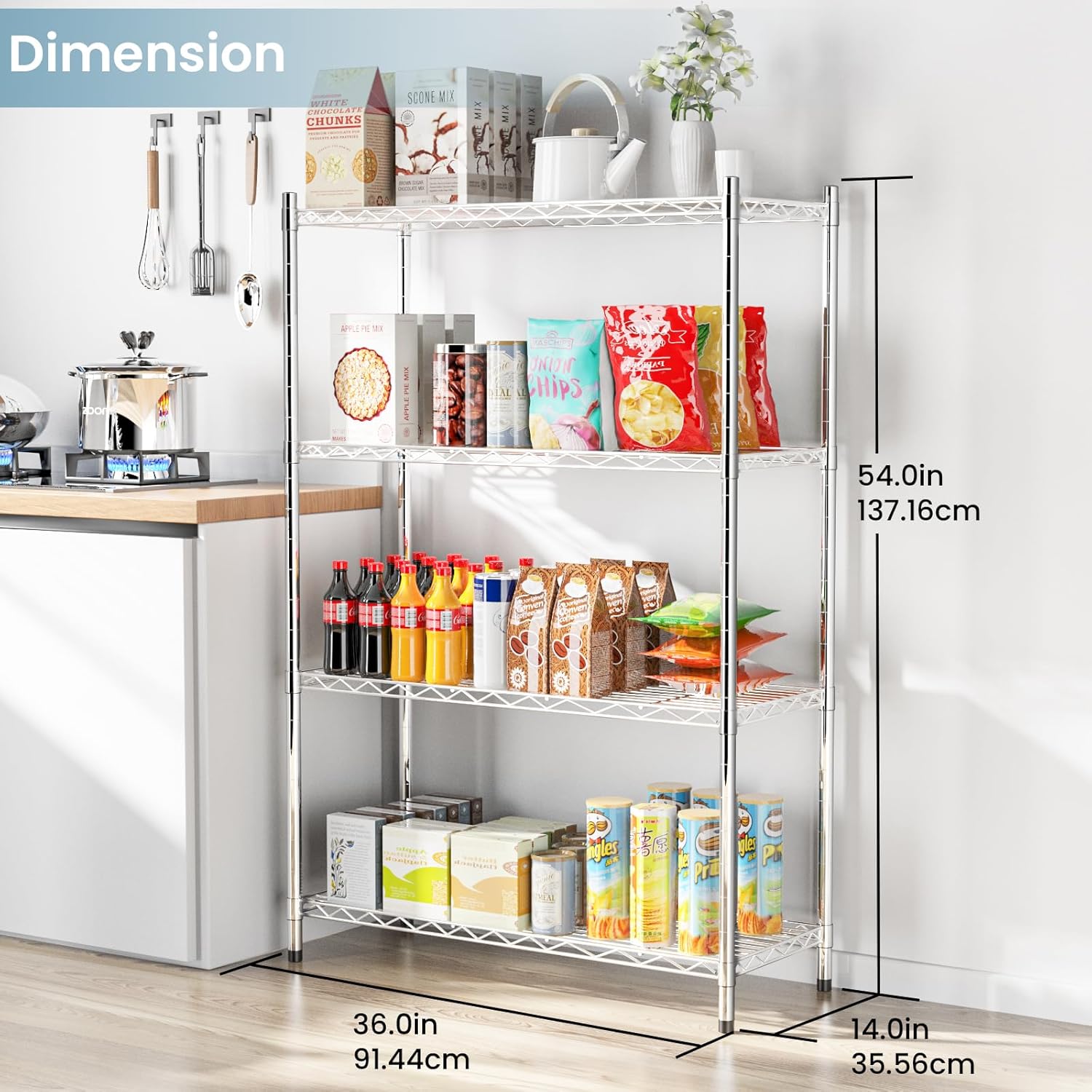 | Model Name | Whitmor 4-Tier Supreme Shelves - Metal Storage Shelves - Durable & Heavy Duty Shelf - Easy Assembly - Pantry, Kitchen, Garage, Plant - Chrome |
